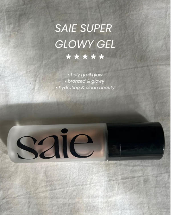 The Saie Super Glowy Gel gives a dewy, glass-skin effect that feels skincare-infused. It’s lightweight, hydrating, and leaves your skin looking fresh and plump. It works beautifully under makeup or mixed with foundation for that radiant, “clean girl” glow.