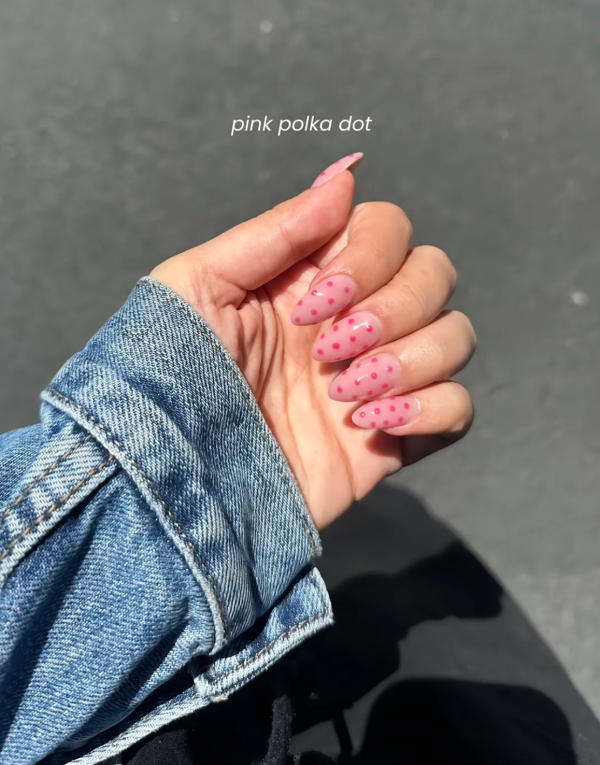 For a cute and bubbly look, try adding dotted pink accents. This style works beautifully on short or long nails and can be customized with bold fuchsias, soft pastels, or a mix of both. It's simple, sweet, and always eye-catching.