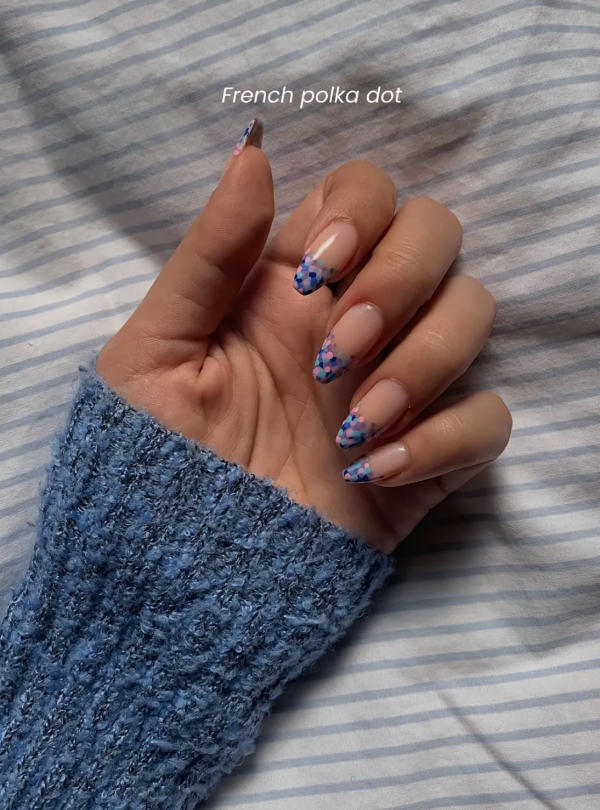 Take your traditional French mani and make it fun by swapping the crisp tip for a row of tiny dots. You can easily create the circles with a dotting tool or even the end of a hairpin. It's a fresh, whimsical take on a classic look.